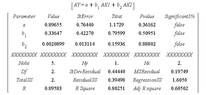 u2 := evalf(Matrix([[Parameter, Value, StError, Tstat, Pvalue, `Significant5%`],
