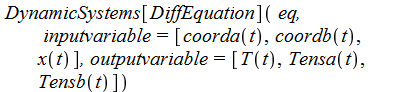 Variables x(t), coorda(t) and coordb(t) are translational coordinates, T(t), Tensa(t) and Tensb(t) are translational forces.