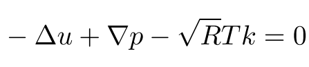 In the above equation, the first term has the Laplacian, the second one has the gradient and in the term "k" is the unit vector and also u=(u1,u2,u3). sqrt(R) is a constant.