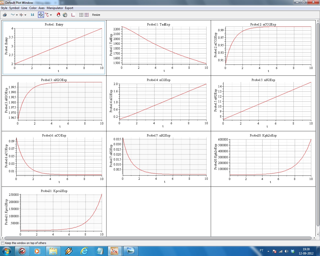 As you cant see i get an error. At this simulation the constant where is probe1 is k=4. I have good results if n=2-~3.5. But what is strange is that if instead of a constant input n=4, i use a ramp that goes from k=2 to k=4, maplesim calculate a result that is correct: