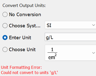 To make the unit formatting work without getting an error message I had to restart the Maple server.