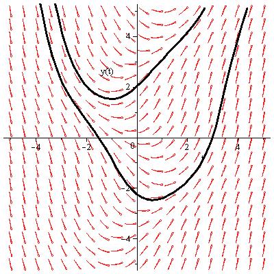 DEplot(eqn3,[y(x)],  x=-3..2  ,IC3,y=-5..5,arrows=comet,linecolor=BLACK);