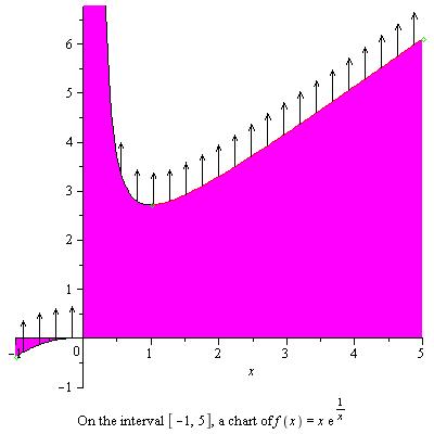 Student[Calculus1][FunctionChart](x*exp(1/x),x=-1..5);