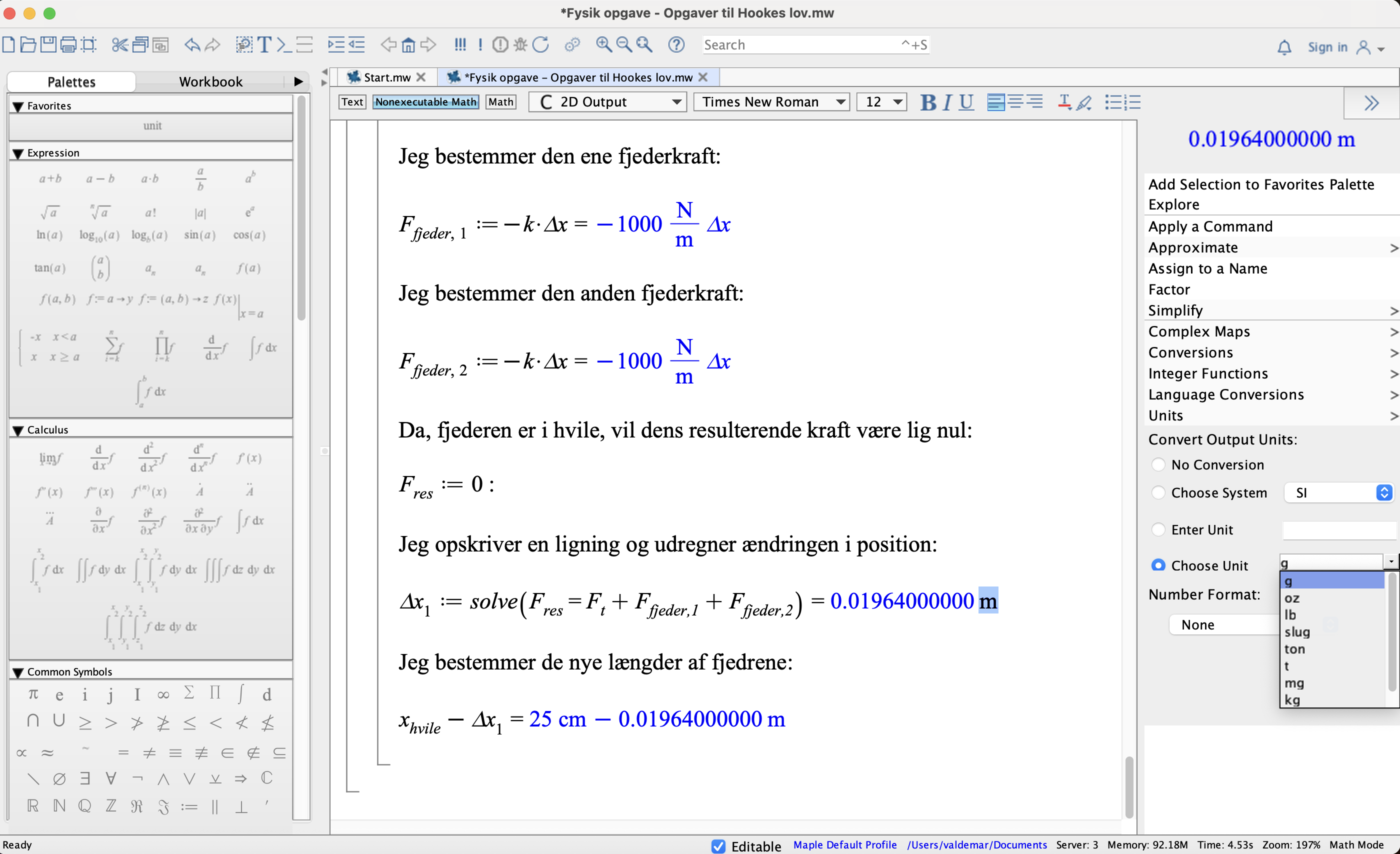 Trying to convert the unit of delta-x1 to f.x. cm is not possible, as Maple sees the unit m as a mass.