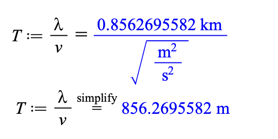 T := lambda/v__s"(=)"856.2695582*Units:-Unit(m)