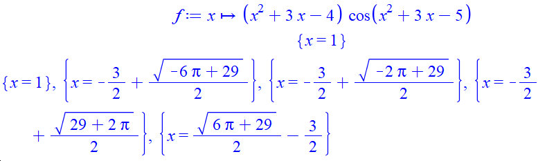f:=x->(x^2+3*x-4)*cos(x^2+3*x-5);