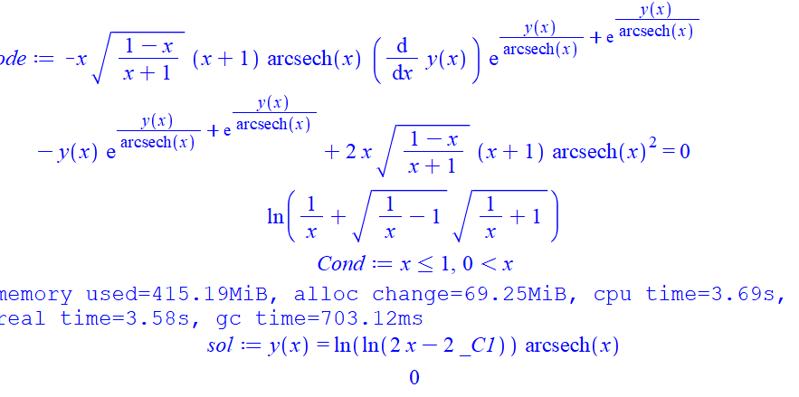 sol:=CodeTools:-Usage(dsolve(ode)) assuming Cond;