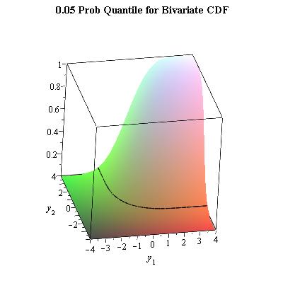 plot3d(numres1, y[1] = -4 .. 4, y[2] = -4 .. 4, axes = Boxed, title = ["0.05 Prob Quantile for Bivariate CDF", font = [TIMES, BOLD, 12]], style = patchcontour, contours = [0.5e-1]);
