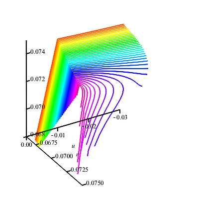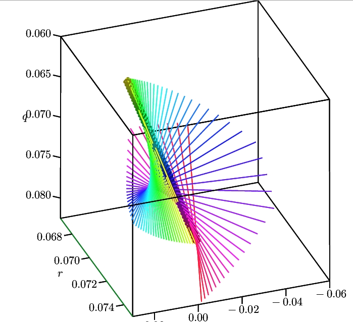 The only difference with the previous examples is the addition of the 'axis' option, where I was hoping that thickening and coloring the axis might help. (another difference is I extended the view so more trajectories are visible):