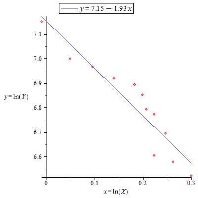 , 'labels' = [ 'x=ln(X)', 'y=ln(Y)' ] );