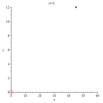 dsol := dsolve({eq1, eq2, x(0) = 0, y(0) = 0, D(x)(0) = V*cos(theta),D(y)(0) = V*sin(theta)}, numeric, output = listprocedure,parameters=[V,theta]);