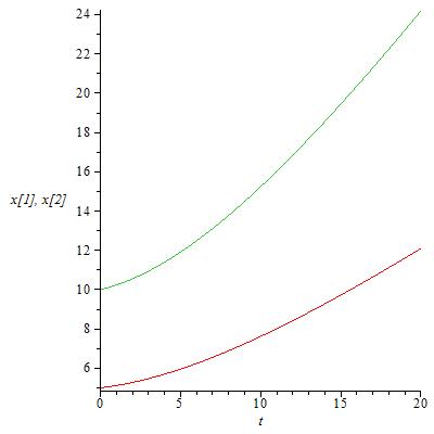 plots[odeplot](S,[[t,x[1](t)],[t,x[2](t)]], t= 0 .. 20);