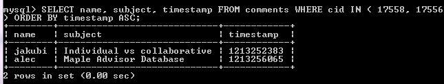 You'll see that the timestamp for your comment, "Individual vs collaborative" is before alec's. New primes always shows comments in the order they were published in ascending order. And this matches what is in the old database.
