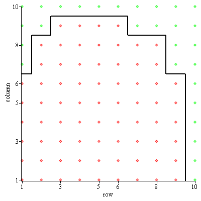 (2, 9) = 1, (2, 10) = 1, (3, 1) = 1, (3, 2) = 2, (3, 3) = 2, (3, 4) = 2,
