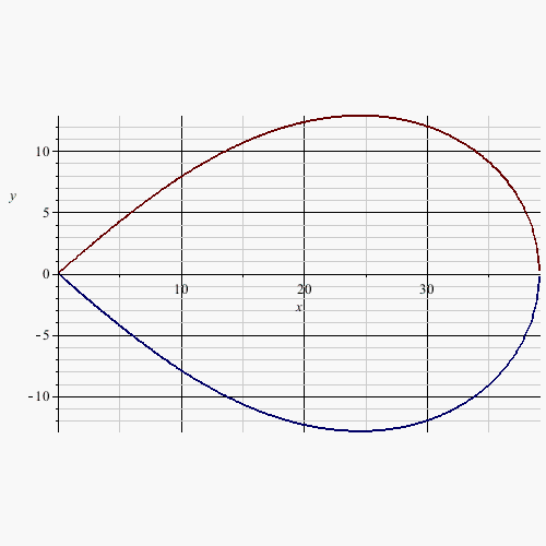 subject to the constraint that the (upper part) arc length is 50 m. That arc length is