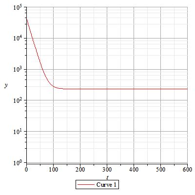 logplot(eq,t=0..600,y=1..100000,gridlines=true);