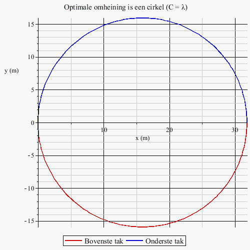 # Correcte definitie van de optimale kromme (halve cirkel op de x-as)
