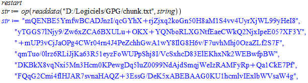It's not working!  I forgot to tell you that this was an extract of a SINGLE line containing 2024 character.  Here how it apprears in Maple after the readdata: