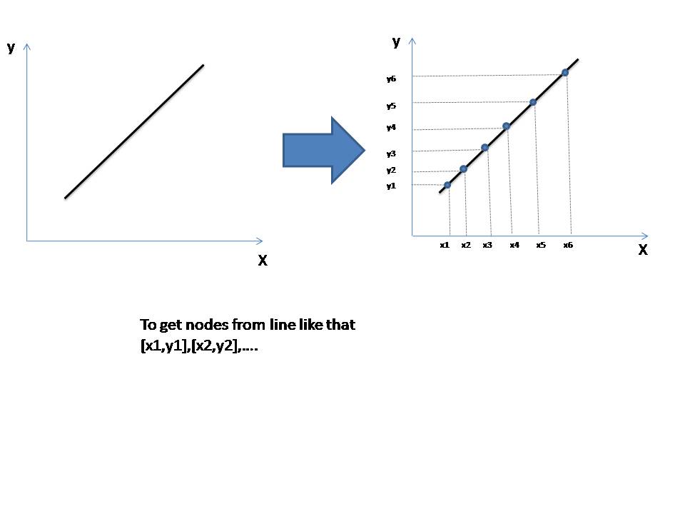 my aim is to get nodes from line which I do not have the function but I have it in x y plane like that picture.