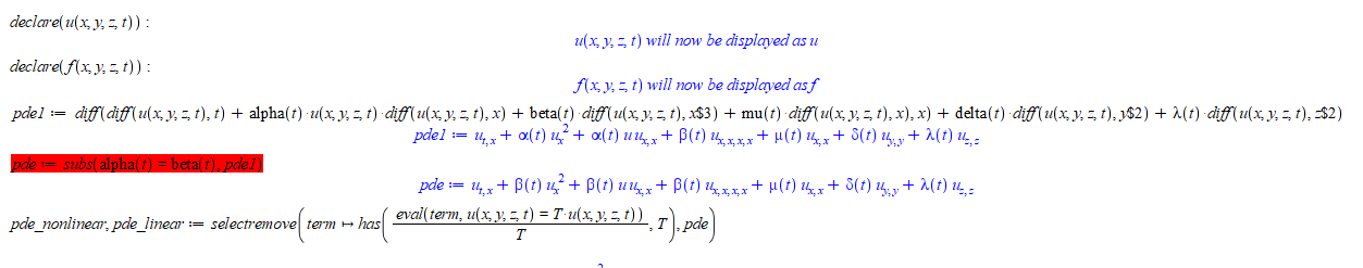 @dharr  i know is confusing becuase this topic  have a lot kind of solution of pde, Soliton=5 type, lump=3 type, breather=2 type, interaction between them also have at least 8 type each on of them the solution is change, but i am sure if for the first two one is correct and without doing substitution is give me zero it  will be  done , if you watch carfully you will see after the first solution make pde be zero in (pdetest(eq19, pde)) then when N=2 start we look for second solution  if that solution make our pde be zero then we say that our substitution is true ,  but how find that condition which make our pdes be zero i am sure is related with that part becuase if you want be sure set all of the function of (t) be one, you will see  the second solution is satisfy pdes
