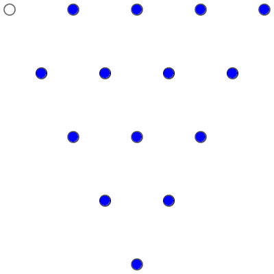 Classic Triangle Peg Board GameIn high school I was briefly fascinated by a triangular "jump all but one" game, commonly found at Cracker Barrel restaurants.  The basic premise is that any peg can "jump" over an adjacent peg to occupy the empty hole next to the jumped peg.  The jumped peg is then removed.  The goal is to continue jumping pegs until there is only one left.