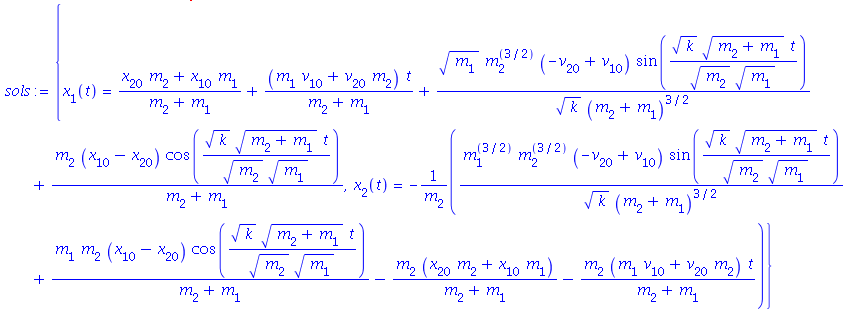In the solution set linked to above, I would like to replace each instance of the constant sqrt(k*(m[2]+m[1])/(m[2]*m[1])) with ω. I feel that this should be possible with algsubs, but cannot figure out the proper way to make it happen. Any help is appreciated! Thanks,