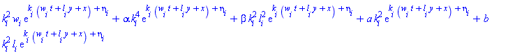k[i]^2*w[i]*exp(k[i]*(t*w[i]+y*l[i]+x)+eta[i])+alpha*k[i]^4*exp(k[i]*(t*w[i]+y*l[i]+x)+eta[i])+beta*k[i]^2*l[i]^2*exp(k[i]*(t*w[i]+y*l[i]+x)+eta[i])+a*k[i]^2*exp(k[i]*(t*w[i]+y*l[i]+x)+eta[i])+b*k[i]^2*l[i]*exp(k[i]*(t*w[i]+y*l[i]+x)+eta[i])