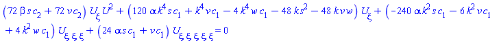 (72*beta*s*c[2]+72*v*c[2])*(diff(U(xi), xi))*U(xi)^2+(120*alpha*k^4*s*c[1]+k^4*v*c[1]-4*k^4*w*c[1]-48*k*s^2-48*k*v*w)*(diff(U(xi), xi))+(-240*alpha*k^2*s*c[1]-6*k^2*v*c[1]+4*k^2*w*c[1])*(diff(diff(diff(U(xi), xi), xi), xi))+(24*alpha*s*c[1]+v*c[1])*(diff(diff(diff(diff(diff(U(xi), xi), xi), xi), xi), xi)) = 0