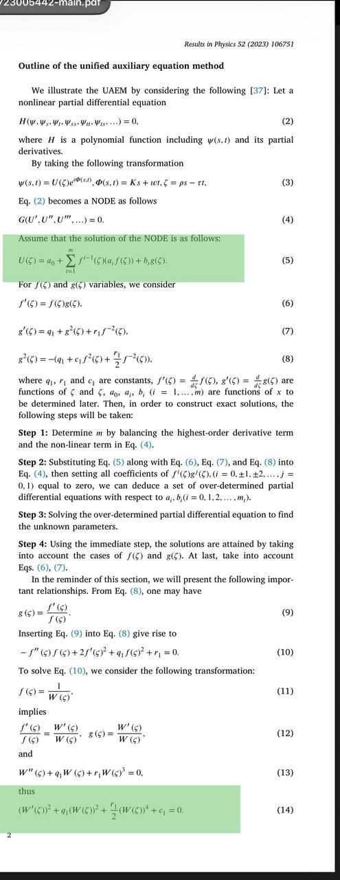 i have to use eq(5) for my orginal ode  but eq(5) contain f(x) and g(x) which by some assumption  and taking two other ode eq(6) and eq(7)  they construct new one which is eq(14) and by f(xi) and g(xi) have corelation with W(xi) which is third ode  as in eq(9) and eq(11) mentioned, i try to use the solution which author mentioned but is not give me solution of third ode by using corelation what is problem here? also in eq(21)  and eq(25) when thus parameter are satisfy must our odetest be zero