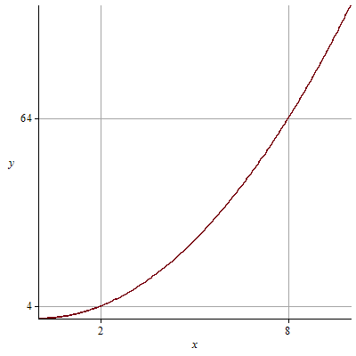 f:= x->x^2:  xticks:= [2,8]: