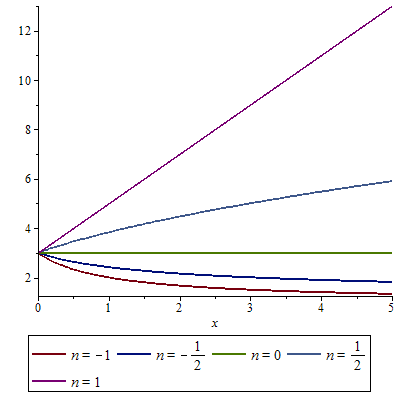 plot([seq](1+2*(1+x)^n, n= M), x= 0..5, legend= [seq]('n'=n, n= M))