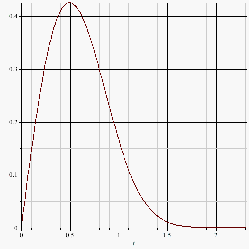 f := t -> piecewise(t <= 0, 0, t <= 2, 6/5 - 3/2*t^2 + 3/4*t^3 - 3/80*t^5, 2 <= t, 0);