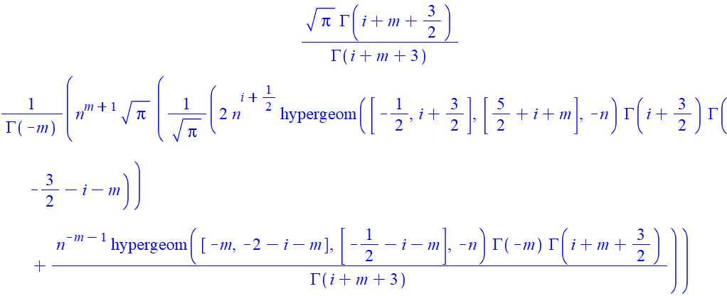 int(2*x^i*(x+n)^m*sqrt(-x^2+x), x = 0 .. 1) assuming n>=1;