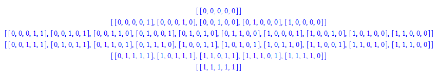 if k>0 and k<n then {seq(seq(`if`(i[j]=0,subsop(j=1,i),NULL), j=1..n), i=bit(n,k-1))} fi;