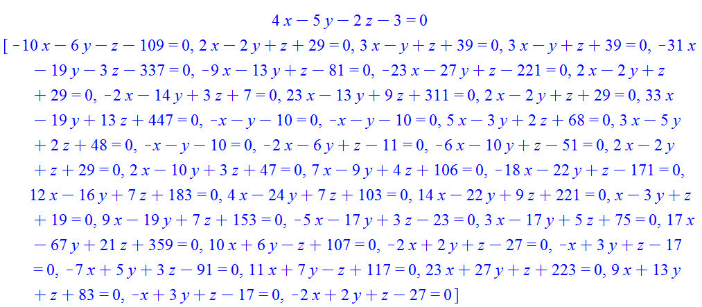 Plane([[1,-1,3],[-15,-17,11],[2,1,0]]);