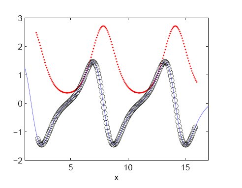Generate values ​​with the function exp (sin (x)) for a set of data, an increase of 2.
