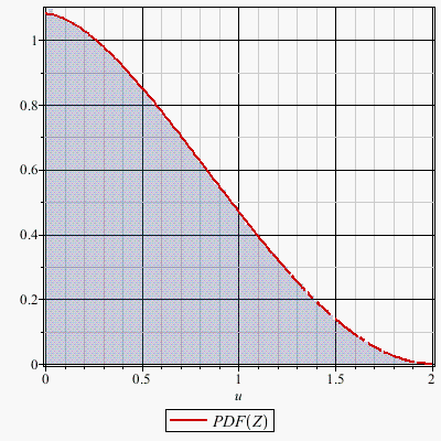 Prob(Z < z) = Int(piecewise(z/x <= 0, 0, z/x <= 1, z^2/x^2, 1 < z/x, 1)*piecewise(x <= 0, 0, 0 < x and x < 2, 1/(Pi*sqrt(1-(1-x)^2)), 2 <= x, 0), x = 0 .. infinity)