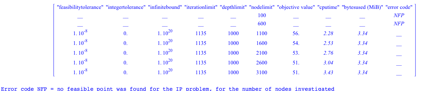 The idea behind this was to build a table gathering the computation, the optimum found, and the performances, in short something like this