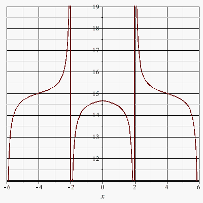 g:=(x,y)->(sqrt(x^2+y^2)-4)/(sqrt(x^2+y^2)-2)/(sqrt(x^2+y^2)-6)+15;
