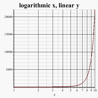 the plots:-logplot() command which provides a linear x-axis and a logarithmic y-axis has been available since Maple VR2 which was released in November 1992!