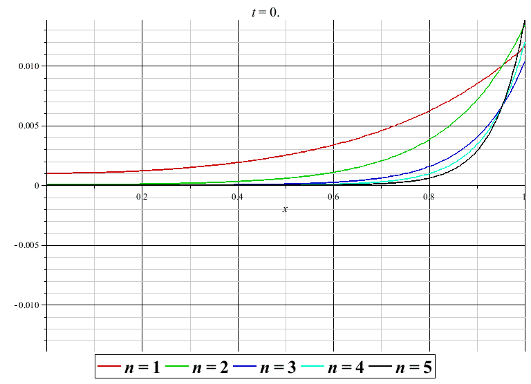 3. I can't produce any meaningful graphs unless the various constants (E, M, L, A, rho, phi) have numerical values. If you assign values to these quantiites then you can plot the final expression I obtained (ignoring the scaling factor D2) in a 3-D plot, as a function of 'x' and 't' parameterized by integer values of the quantity 'n'