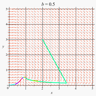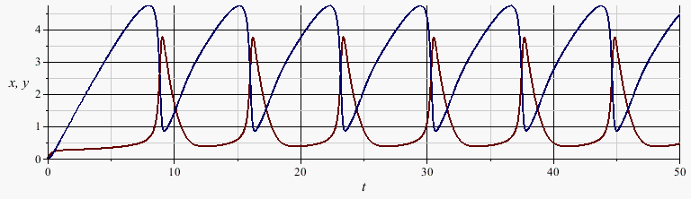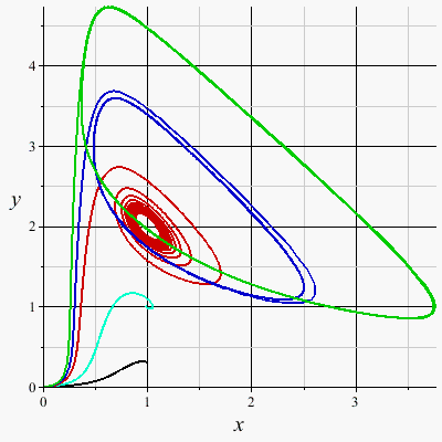 eq := (Vector(2, {(1) = diff(x(t), t), (2) = diff(y(t), t)})) = (Vector(2, {(1) = -y(t)+int(exp((1/2)*u-(1/2)*t)*y(u), u = 0 .. t)+x(t)/(t+1)^2, (2) = x(t)-y(t)+int(exp((1/2)*u-(1/2)*t)*x(u), u = 0 .. t)+y(t)/(t+1)^2}))