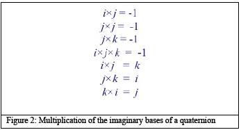 The hypercomplex number called the quaternion (4D) is a non-commutative division ring algebra. This is what we call a four-dimensional number. Here is an example of a quaternion: 5 + 2i + 3j + 4k. The first term is called the scalar component; it is simply a real number. The other terms consisting of, i, j, k are called the imaginary basis components with real coefficients. All the imaginary components are called the vector part of the quaternion. Heaviside's and Gibbs' Vector algebra uses the same name vector as the quaternion algebra, but with a different meaning. I repeat, although Heaviside's and Gibbs vector algebra and Tensor Algebra are an offspring of Cayley-Dickson Algebra, they are not numbers. In addition, it is impossible to divide a Heaviside's and Gibbs' vector (see figure 2 for multiplication of imaginary bases of a quaternion, which is a true number).