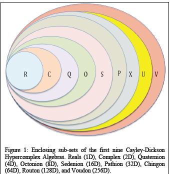 In addition, Cayley-Dickson Hypercomplex numbers are an extension of the concept of numbers. It is found that a real number is a one-dimension number that can be represented on a number line and a complex number is a two-dimension number that can be represented on a plane. Extending that logic, one may also find that one can produce more numbers by continuing doubling the dimensions into higher dimensional spaces.