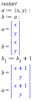In the first section I define a vector a and try to copy that vector and assign it to an variable b. Then changing the first coordinate in the copied vector b actually change the original vector as well. I found that behavior rather counter-intuitive. Is it working something like a Pointer in certain programming languages? I mean no extra memory is allocated for the "copy"?
