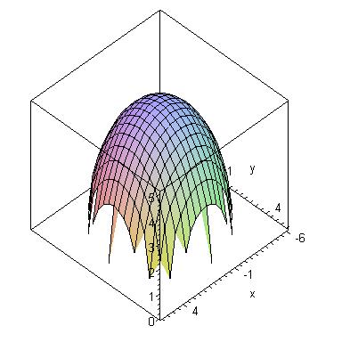 plot3d(sqrt(25-x^2-y^2),x=-6..6,y=-6..6,axes=box)