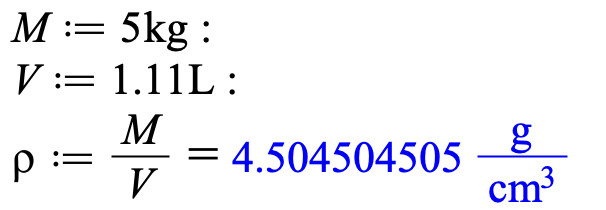 In the first example I am using capital M for mass; now I can change unit on density.