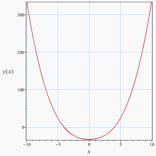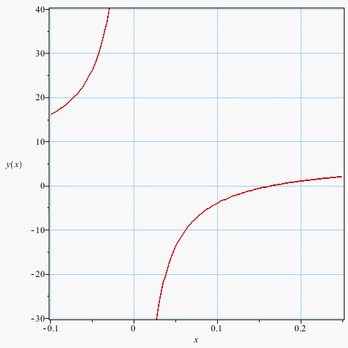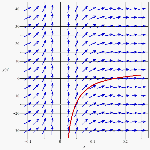 p1:=plot(rhs(sol),'axes'='boxed','labels'=[x,y(x)],'axis'=['gridlines'=['color'='lightblue']],'color' = 'red'):