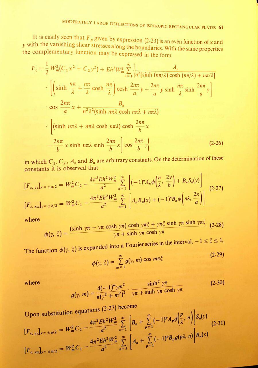 FC := (1/2)*W_m^2*(c1*x^2+c2*y^2)+(E.(h^2))*W_m^2*(sum(An*((sinh(n*Pi/lambda)+n*Pi*cosh(n*Pi/lambda)/lambda)*cosh(2*n*Pi*y/a)-2*n*Pi*y*sinh(n*Pi/lambda)*sinh(2*n*Pi*y/a)/a)*cos(2*n*Pi*x/a)/(n^2*(sinh(n*Pi/lambda)*cosh(n*Pi/lambda)+n*Pi/lambda))+Bn*((sinh(n*Pi*lambda)+n*Pi*lambda*cosh(n*Pi*lambda))*cosh(2*n*Pi*x/b)-2*n*Pi*x*sinh(n*Pi*lambda)*sinh(2*n*Pi*x/b)/b)*cos(2*n*Pi*y/b)/(lambda^2*n^2*(sinh(n*Pi*lambda)*cosh(n*Pi*lambda)+n*Pi*lambda)), n = 1 .. n))