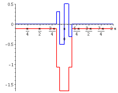 plot([Re,Im](F5), theta=0..2*Pi,color=[red,blue]);